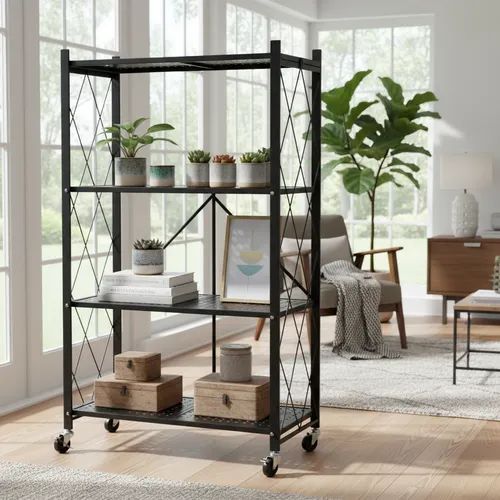 Optimizá el espacio y mantené todo perfectamente organizado con esta estantería plegable de 4 niveles, pensada para quienes necesitan mayor capacidad y resistencia. Su estructura de metal reforzada brinda firmeza y durabilidad, ideal para uso intensivo tanto en el hogar como en comercios, depósitos u oficinas.